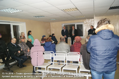 ![]() В первые дни, после своего назначения на должность, глава администрации МО «Город Пикалево» Садовников Д.Н. провел свою первую публичную встречу с жителями на выезде. 13 октября 2016 года, по инициативе граждан, в помещении железнодорожных касс, прошла встреча с жителями жилой зоны «Станции Пикалево » и «Новая деревня». Не смотря на то что в должности главы администрации Дмитрий Николаевич впервые проводил подобную встречу, руководитель представляет круг вопросов и тем которые интересуют жителей этой части МО «Город Пикалево», т.к. выполняя обязанности депутата избирательного округа, в который входит эта территория и возглавляя Общественный совет уже участвовал в решении проблем жителей частного сектора. Для полноценного и конструктивного диалога, и в целях оперативного решения обсуждаемых вопросов, к участию во встрече глава администрации пригласил представителей администрации - главного архитектора Веру Петрову Филизову, заведующего общим отделом Наталью Игоревну Дергилеву, депутатов по избирательному округу № 1 Марину Игоревну Базарову и Андрея Ивановича Литвинова, а так же представителей полиции и.о. заместителя начальника 91 отдела полиции, курирющего службу участковых уполномоченных Воробьева Сергея Валерьевича, участкового уполномоченного Воронова Василия Николаевича, главного инженера БРЭС ПАО «Ленэнерго» филиал «Тихвинские электрические сети» Кавуна Алексей Геннадьевич (контактные телефоны дежурной службы БРЭС - 43312). Перед началом встречи депутат, руководитель Пикалевской городской больницы А.И.Литвинов проинформировал присутствующих о проводящийся в районе ежегодной вакцинации от сезонного гриппа, кратко рассказал об особенностях, правде и домыслах о вакцинах и предложил присутствующим воспользоваться услугами прививочной бригады, которая так же прибыла на встречу жителей. К слову, в этот вечер, часть присутствовавших жителей воспользовались предложением врача и сделали прививку. Подробности об особенности осенней вакцинации 2016 года читайте на официальном сайте ГБУЗ ЛО «Бокситогорская МБ» http://crb-boksitogorsk.lpu01.ru/home/115-news1-29072015.html Открывая встречу глава администрации предложил жителям задавать интересующие вопросы. Качество освещения и перерывы в подаче энергоснабжения одна из основных проблем этой части МО «Город Пикалево». На эти вопросы отвечал представитель «Ленэнерго», который пояснил что по большей части данные проблемы вызваны строительством новой ЛЭП и реконструкцией старых энергосистем. В своем выступлении А.Г. Кавун заверил, что к началу 2017 года такие проблемы отойдут в прошлое. Практически все участники встречи жаловались на диспетчерскую службу энергетиков, в частности на грубые, неконкретные ответы. Д.Н. Садовников обратил внимание представителя «Ленэнерго» на этот факт и просил исключить это в дальнейшем. Много проблем доставляют жителям этой территории МО - дороги, как федеральная трасса, так и местные грунтовые улицы и переулки. Если федеральная трасса после ремонта, с новыми бордюрами превратилась для многих жителей в трудно-преодолимое препятствие, то внутренние дороги требуют ремонта, своевременной очистки зимой. Данные вопросы глава администрации предложил решать в рабочем порядке, своевременно сообщать в диспетчерскую службу города для оперативного решения проб